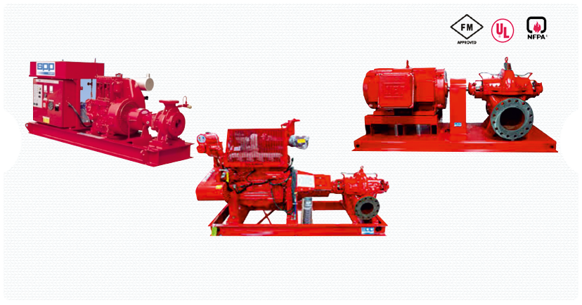 EQUIPOS DESDE 250 HASTA 5000 GPM ELÉCTRICA Y DIESEL. CARCASA PARTIDA, TURBINA VERTICAL Y EN LÍNEA CUMPLEN NORMAS NFPA, CERTICADOS UL APROBADOS FM
